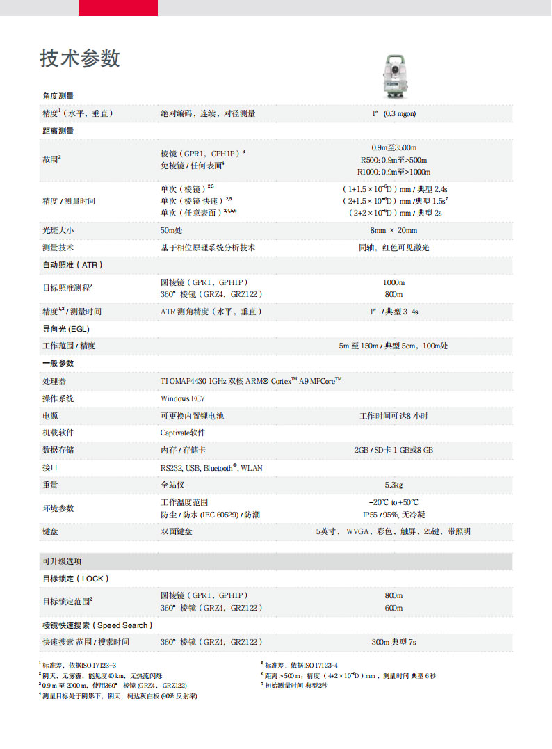 徠卡全站儀TS11i/15i全站儀①:  通用Windows操作系統(tǒng),符合用戶使用習(xí)慣。   您將能享受:瀏覽網(wǎng)頁(yè);WordPAD文本編輯;Windows方式的數(shù)據(jù)管理/下載。②: ...
